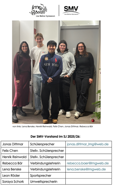 Die SMV entsendet Vertreter in die Schulkonferenz. Schülervertreter können einzelne Mitschüler vertreten, sofern diese es wünschen.