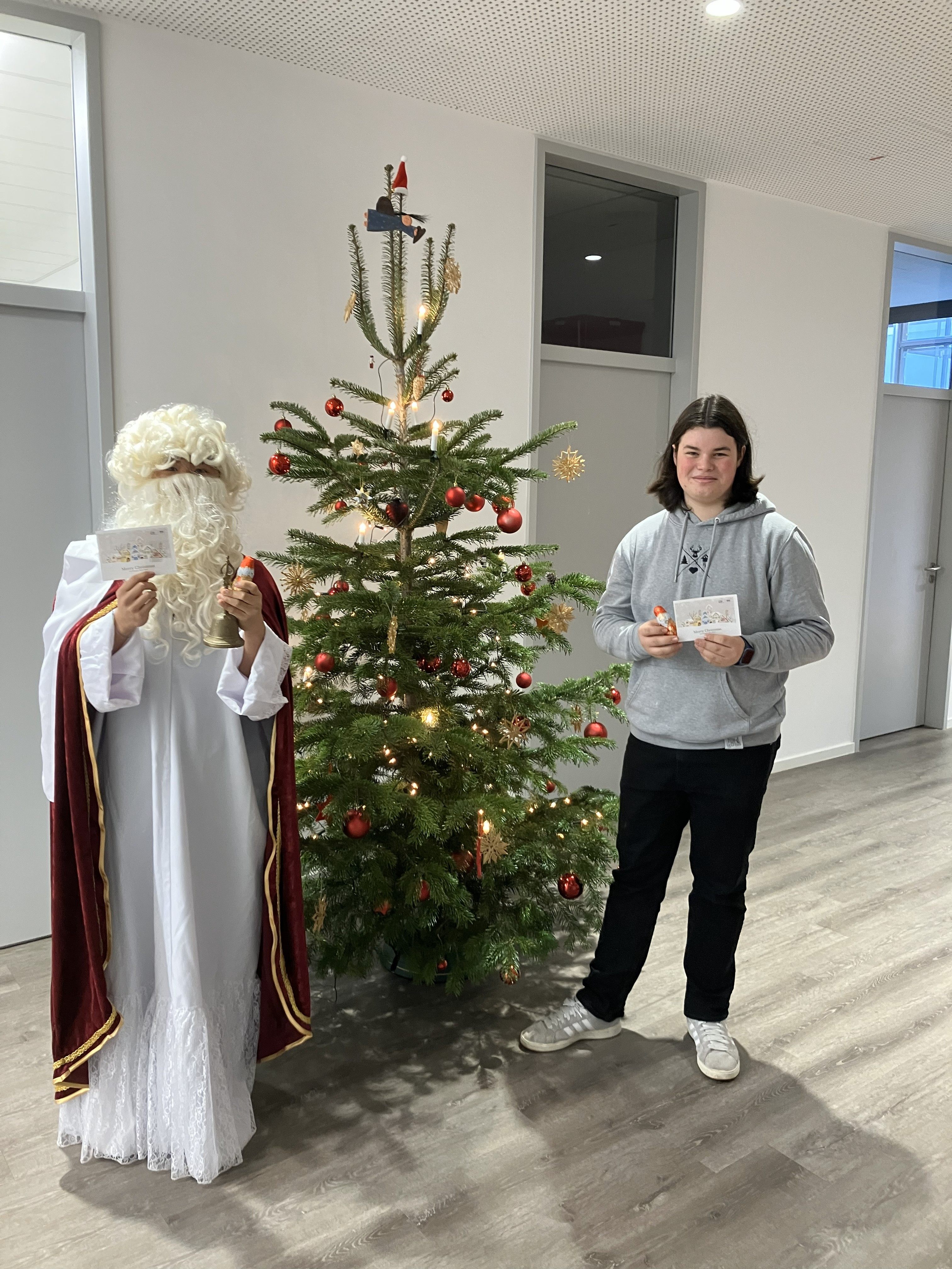 In der Vorweihnachtszeit organisierte die SMV unserer Schule eine besondere Aktion: Als Nikoläuse verkleidet verteilten wir fair gehandelte Schokoladen-Nikoläuse an alle Schülerinnen und Schüler sowie an das Kollegium und brachten so vorweihnachtliche Stimmung in den Schulalltag. Ein besonderes Highlight der Aktion waren Briefe mit persönlichen Weihnachtsbotschaften. Diese wurden sowohl von Klassenlehrkräften an ihre Klassen als auch von Schülerinnen und Schülern an ihre Lehrkräfte verfasst und vorgelesen. Die wertschätzenden Worte sorgten für viele schöne Momente. Die Aktion kam bei allen sehr gut an und zeigte, wie wichtig Gemeinschaft, Wertschätzung und ein respektvolles Miteinander sind. Wir freuen uns, dass wir mit dieser Weihnachtsaktion so vielen eine kleine Freude machen konnten. |